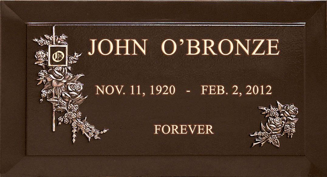 Typically, you can fit a significant amount more of text and designs on a bronze plaque than that of a granite grass marker. Bronze images are a new innovative way to have a bas relief replication of a photo that is cast into the plaque.